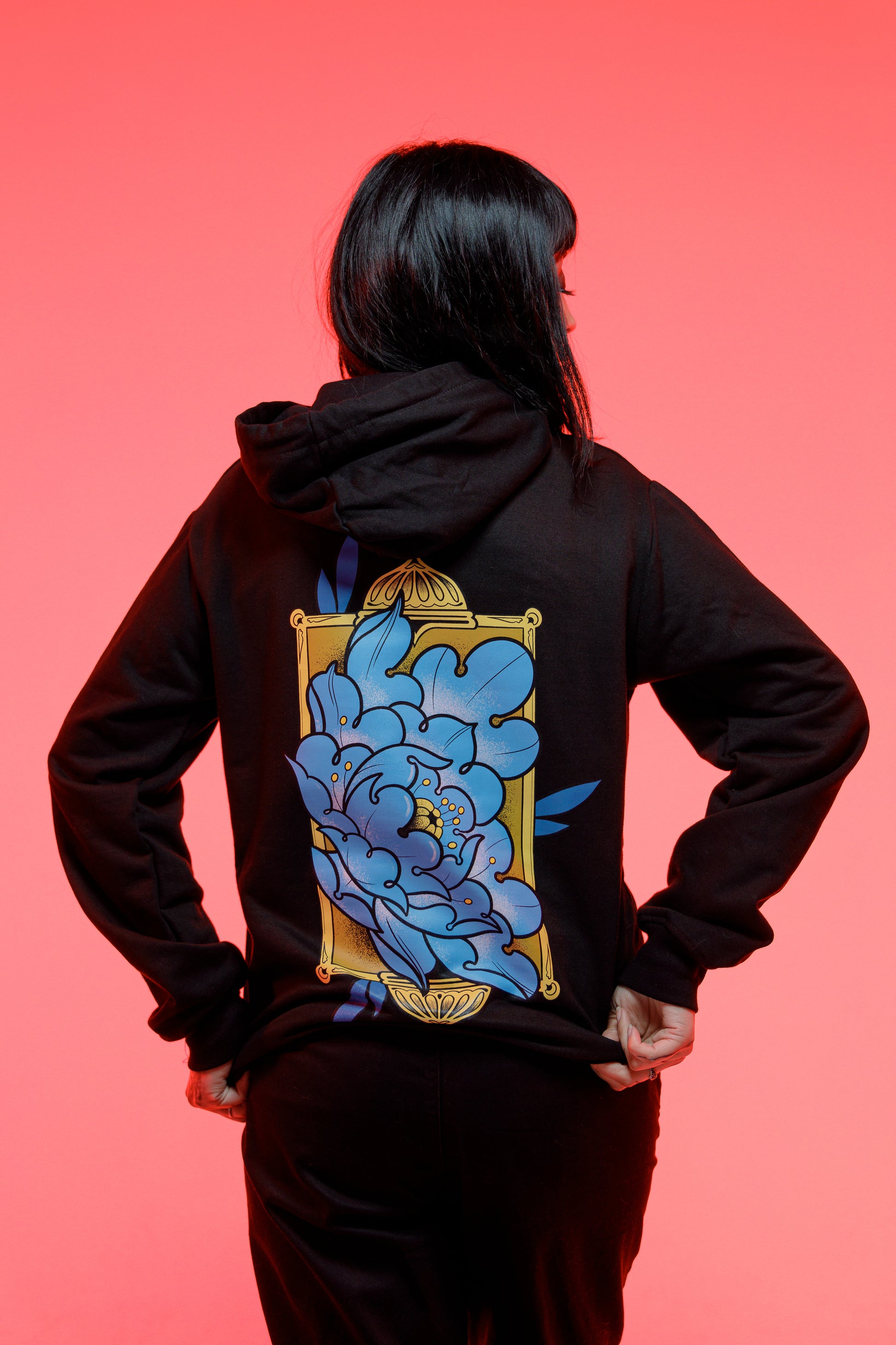 La colaboración con la tatuadora Karina Mardones (Karykila) muestra una peonia con estilo de tatuaje neotradicional que se ha caracterizado mucho dentro de su trabajo.